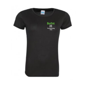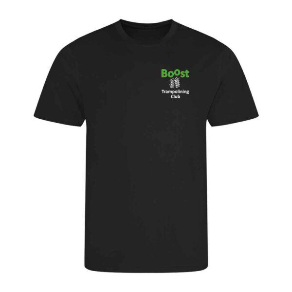 100% polyester moisture wicking sports t-shirt. Printed left chest and back with Boost Trampolining Club logo. Coach printed on the back.