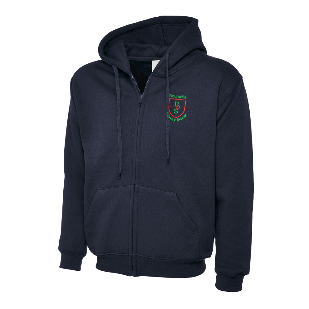 50% Cotton, 50% Polyester. Full Zip. Embroidered left chest with school emblem, printed with Leavers 26 on the back. Children’s sizes do not have neck drawcord.
